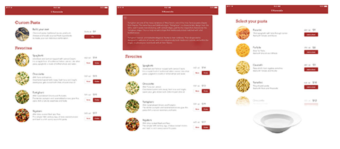 For this project, I created a menu for a fast-casual custom, made-to-order fresh Italian pasta. Ease of use when ordering and the unique combination of pasta, sauce, and toppings were important to the demographics of 18-35, working professionals that value fresh ingredients are time conscious and tech-savvy.