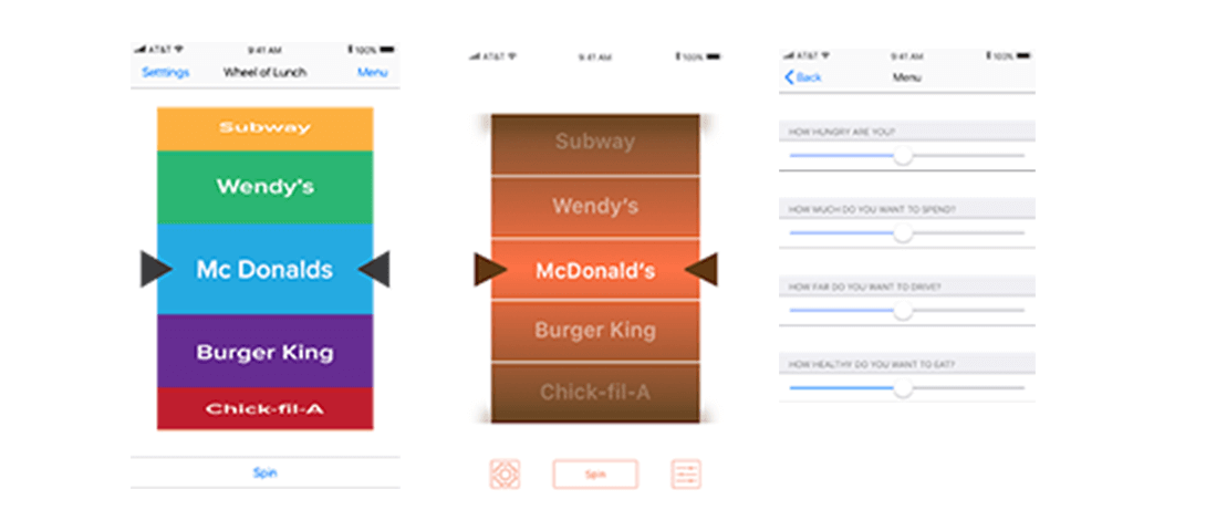 Designed a single-purpose mobile application that quickly chooses lunch when you're indecisive.